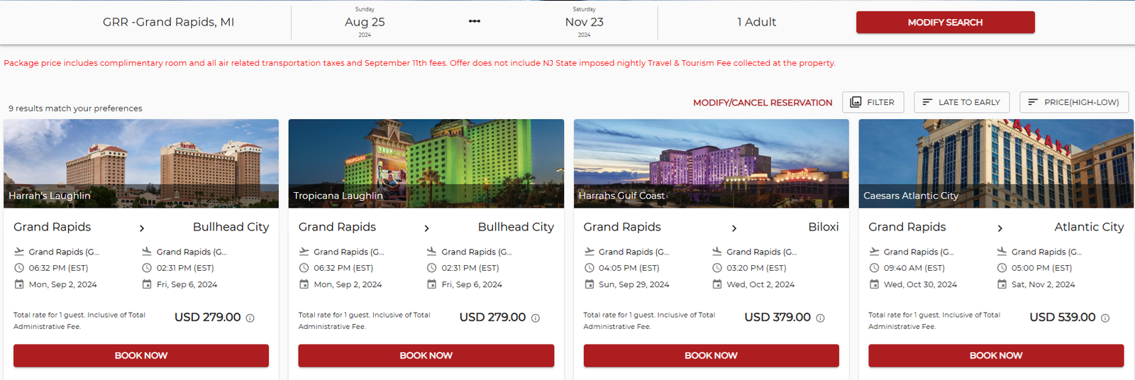 Below is an image of Charter flights out of Grand Rapids Michigan from Aug - Nov without putting my rewards card number in. This is for 1 person. This would be the price you can book it without a rewards card.